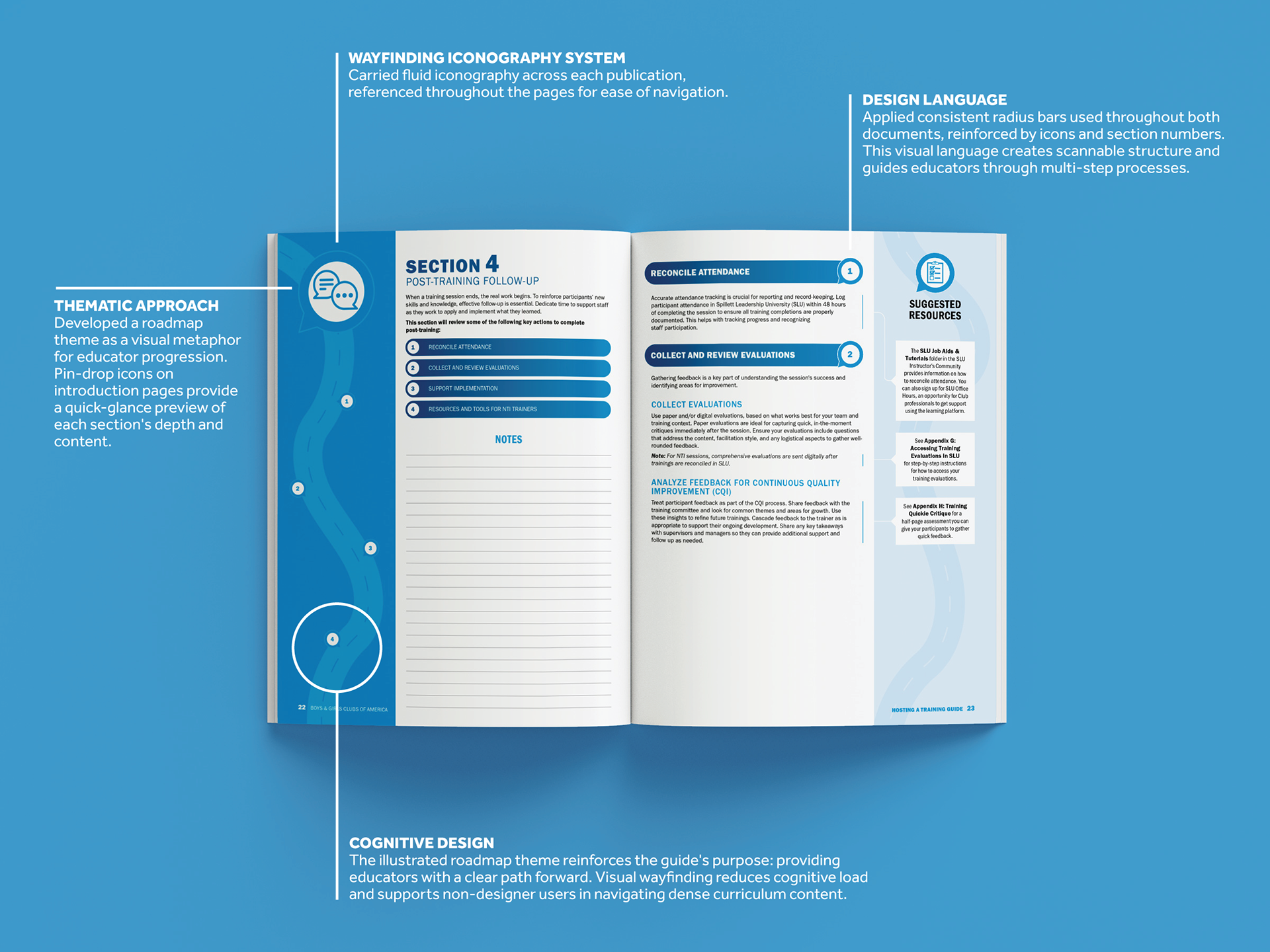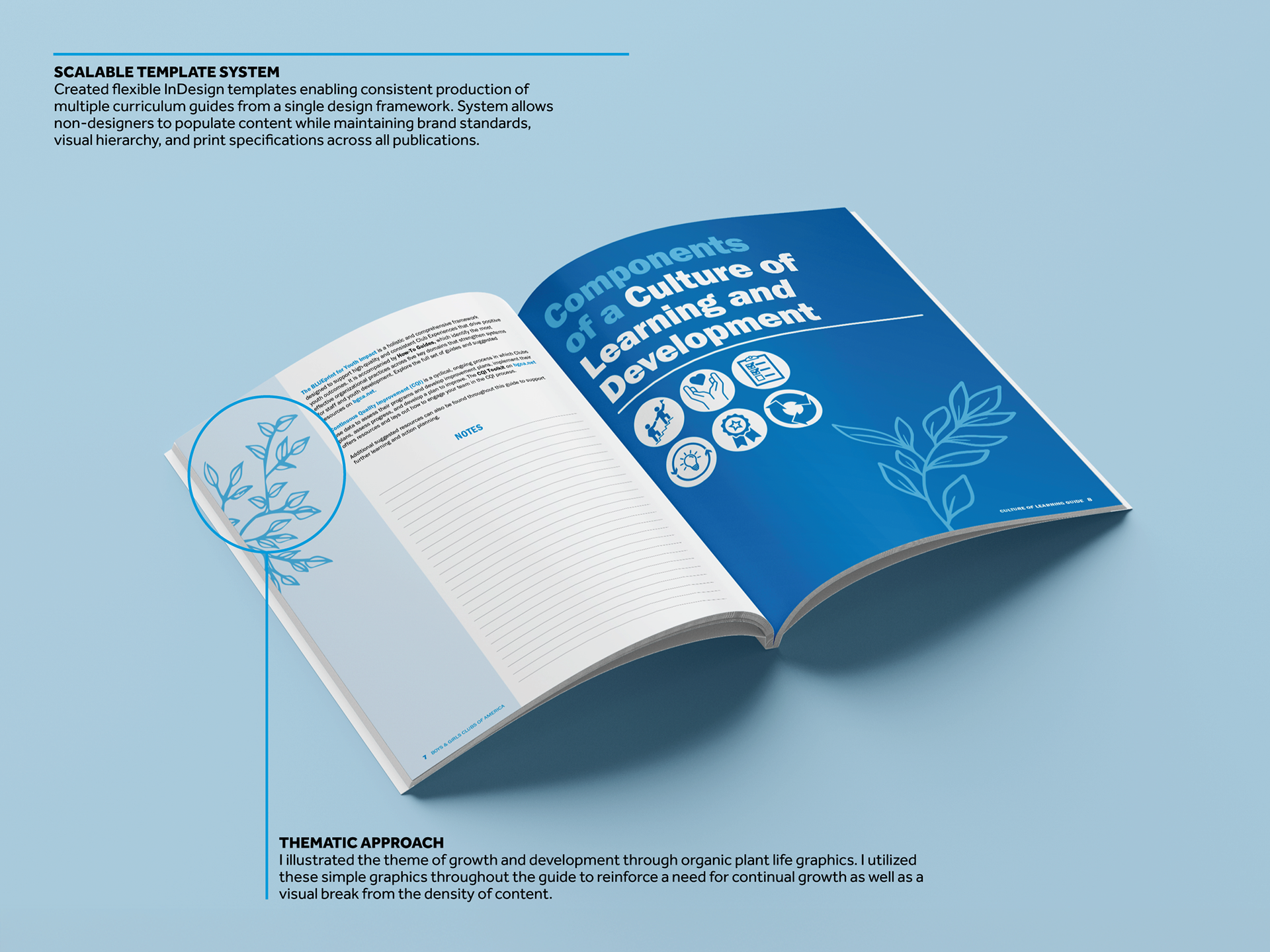 The flexible template system reduced production time for new curriculum materials while maintaining brand consistency across all Boys & Girls Clubs of America programs. The standardized design framework enabled non-design staff to create professional, on-brand materials efficiently. These guides have become the foundation for curriculum development across multiple BGCA initiatives, serving educators and students from elementary school through high school.