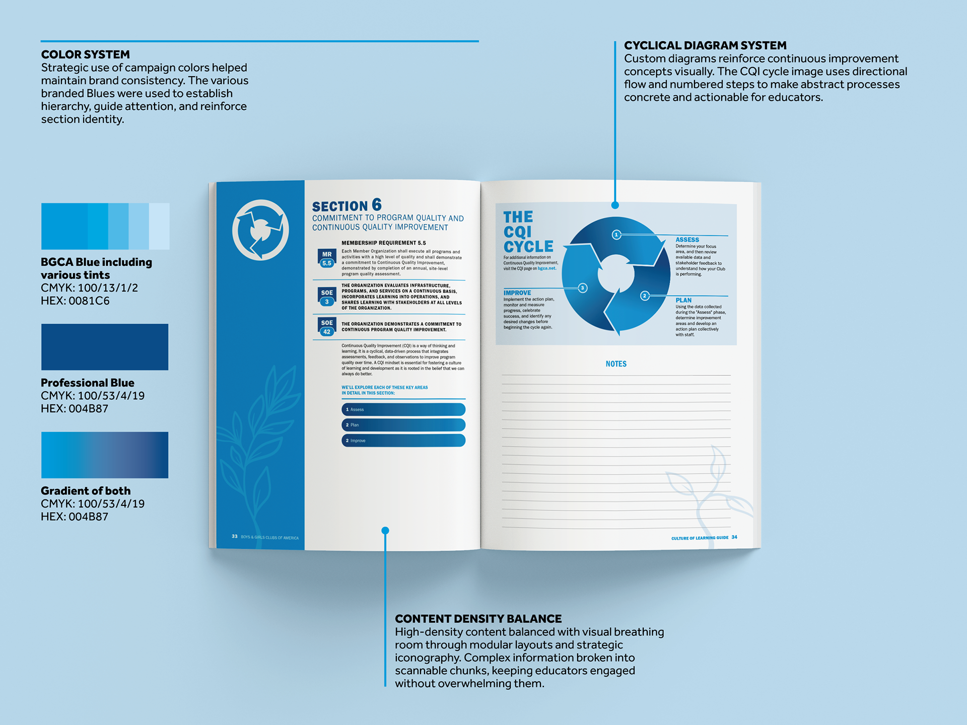 I approached the project as a flexible document system rather than isolated layouts. The goal was to improve readability and engagement while allowing each guide to develop its own identity within BGCA’s established brand framework.